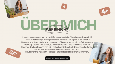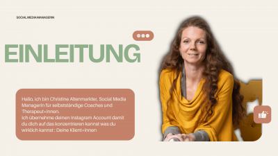 | Freelance Social Media Managerin für Selbstständige und kleine Unternehmen. Instagram, Facebook, Content Planung und Umsetzung. Mehr Sichtbarkeit und Anfragen ohne eigenen Zeitaufwand. |